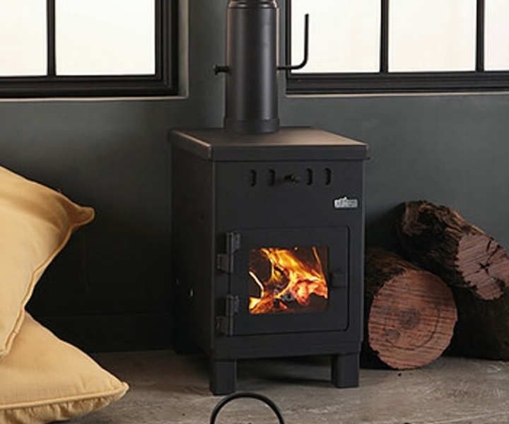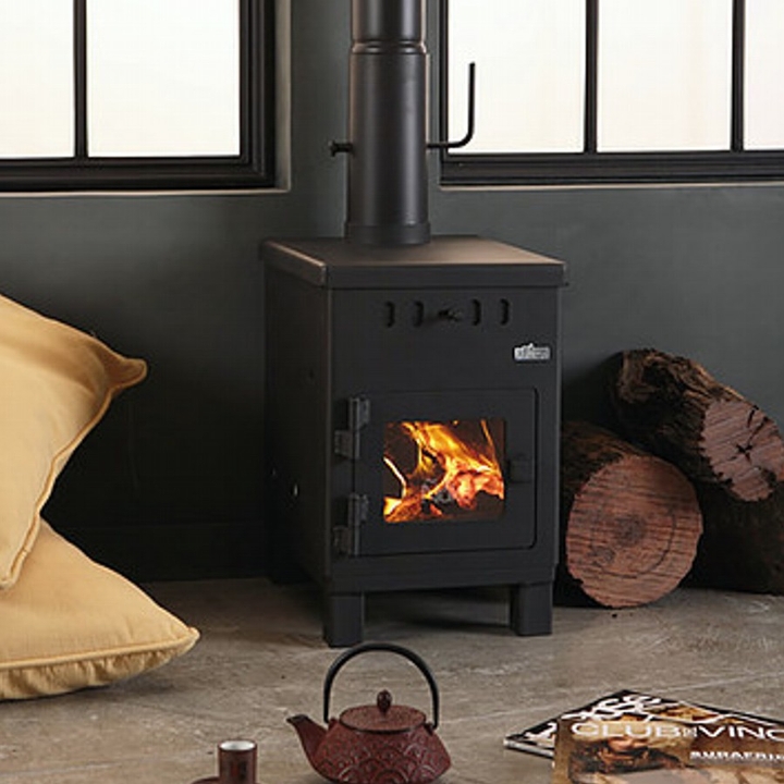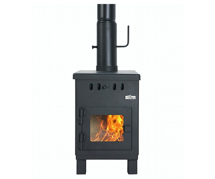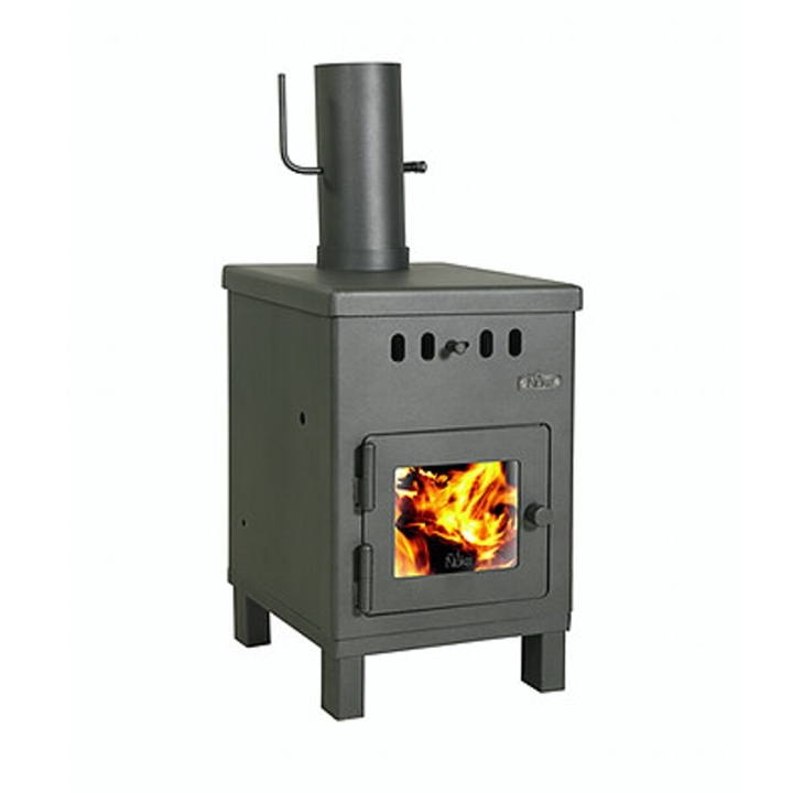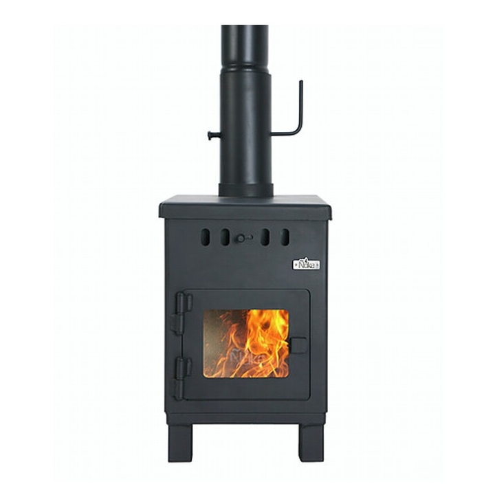Económica y eficaz estufa a leña que proporciona 6.000 K/cal, el ingreso de aire primario es por la parte superior del frente, limpiando el Vitrocerámico. Recubierto en todo el interior con refractarios, posee dos cámaras de combustión, donde se queman todos los gases (no emite humo ni olor), su sistema de doble combustión logra un alto rendimiento de biomasa. Se ha verificado en la Patagonia que calefacciona ambientes de 45 metros cuadrados. Esta superficie varía según la ubicación geográfica y las características de la vivienda.