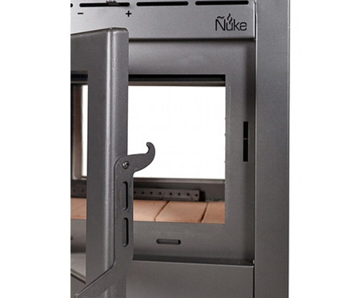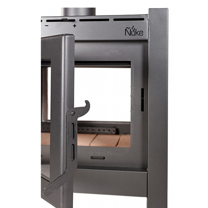 Estufa con doble frente a leña de gran tamaño de 18.000 K/cal. Para superficies de 95 a 150 m2. Recubierto en todo el interior con refractarios, posee dos cámaras de combustión, donde se queman todos los gases (no emite humo ni olor), su sistema de doble combustión logra un alto rendimiento de biomasa. Tiene una gran visibilidad del fuego. Entrada del aire vertical para limpiar el vitrocerámico Schott Robax, pintura de alta temperatura, cierre de puerta con un cordón de fibrocerámica y bisagras ocultas. Se genera calor por convección y por radiación, con el mismo sistema de combustión Ñuke. El doble frente permite disfrutar del fuego en varios ambientes. Como todas las Ñuke Lapacho su gran tamaño y su armonía estética le dan una presencia proporcional a los amplios ambientes donde se instala.