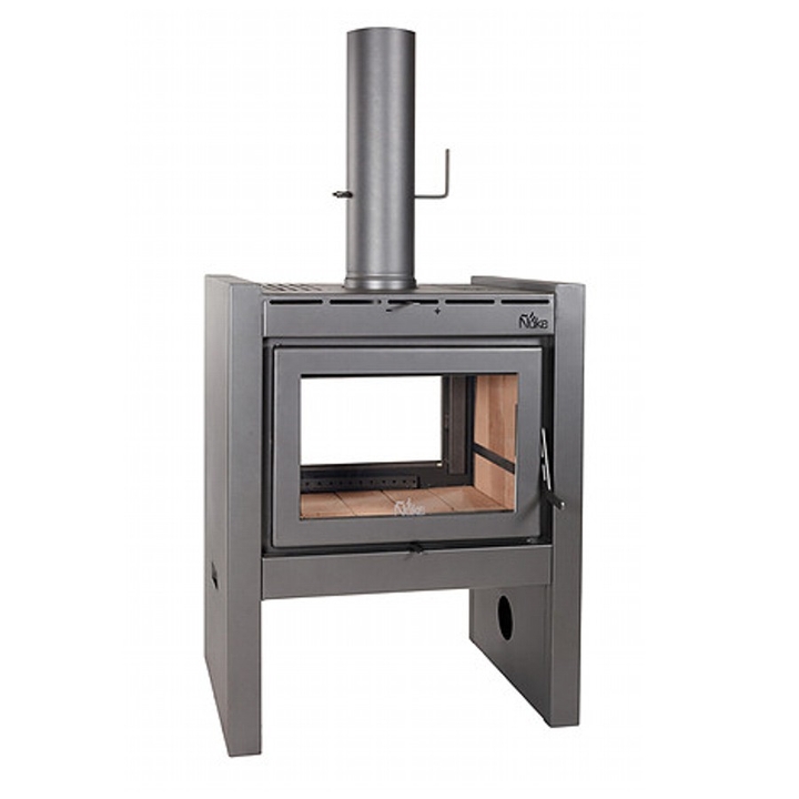 | Materiales | Acero de 5 mm de espesor en la zona de contacto con el fuego. Soldaduras MIG. Material refractario de 20 mm. de espesor. Vitrocerámica Schott Robax resistente hasta 750ºC. Pintura para altas temperaturas. |