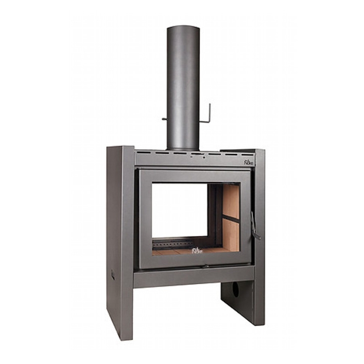 | Materiales | Acero de 5 mm de espesor en la zona de contacto con el fuego. Soldaduras MIG. Material refractario de 20 mm. de espesor. Vitrocerámica Schott Robax resistente hasta 750ºC. Pintura para altas temperaturas. |