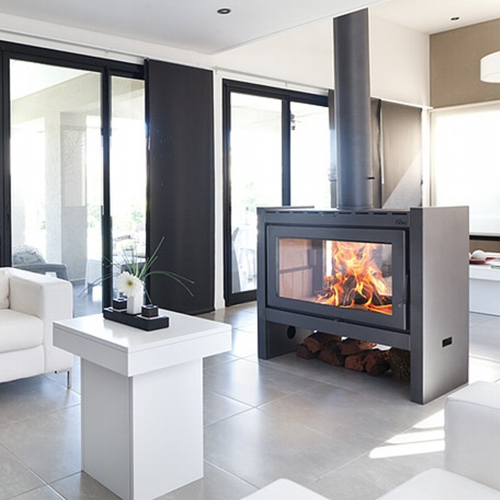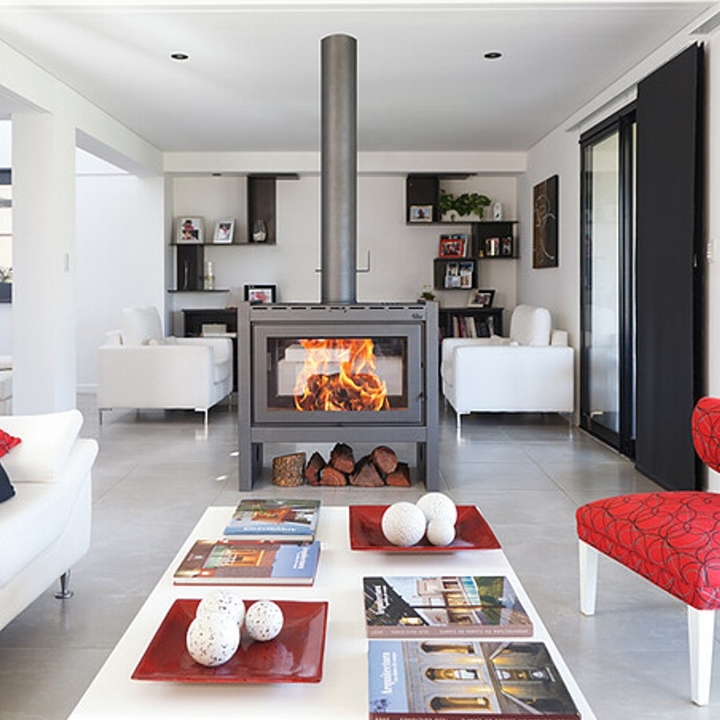 La estufa a leña más grande de Ñuke de 25.000 K/cal. Para superficies de 120 a 200 m2. Recubierto en todo el interior con refractarios, posee dos cámaras de combustión, donde se queman todos los gases (no emite humo ni olor), su sistema de doble combustión logra un alto rendimiento de biomasa. Tiene una gran visibilidad del fuego y su diseño apaisado la hace moderna e imponente. . Entrada del aire vertical para limpiar el vitrocerámico Schott Robax, pintura de alta temperatura, cierre de puerta con un cordón de fibrocerámica y bisagras ocultas. Se genera calor por convección y por radiación, con el mismo sistema de combustión Ñuke.