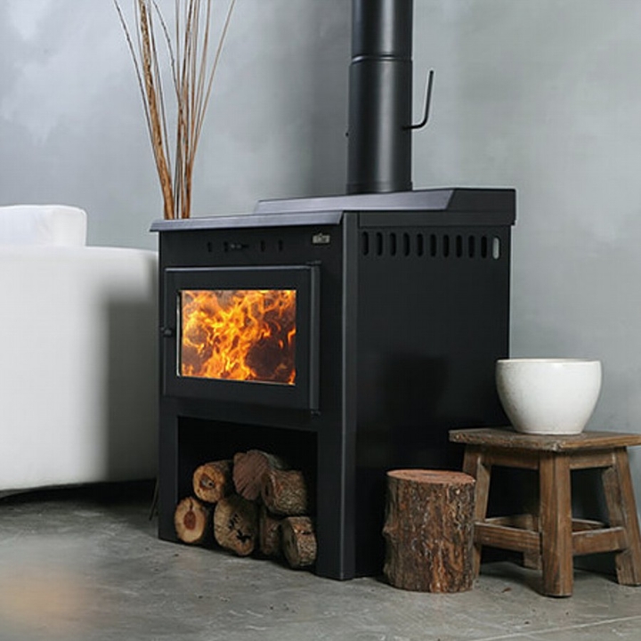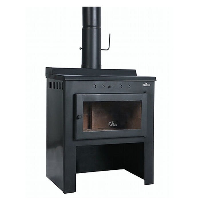 Este producto certificado por el INTI, cumple con todas las funciones necesarias para una familia tipo: calefacciona, cocina, hornea y calienta agua con el más alto rendimiento de la leña, proporcionando 15.000 K/cal. Recubierto en todo el interior con refractarios, posee dos cámaras de combustión, donde se queman todos los gases (no emite humo ni olor), su sistema de doble combustión logra un alto rendimiento de biomasa. Tiene una gran visibilidad del fuego. Entrada del aire vertical para limpiar el vitrocerámico Schott Robax, pintura de alta temperatura, cierre de puerta con un cordón de fibrocerámica y bisagras ocultas. Se genera calor por convección y por radiación, con el mismo sistema de combustión Ñuke. Este diseño de Ñuke, fue creado para cubrir en un solo producto necesidades básicas de una familia: calefaccionar, cocinar y hornear. Todo el interior está revestido por refractarios de 6 cm. de espesor. Se puede usar como cocina, colocando ollas en su tapa, que tiene dos hornallas(opcional). Se puede hornear en su interior, que funciona como un horno de barro. Y opcionalmente genera agua caliente por medio de una serpentina y algunos de los modelos de termotanques Ñuke. Comparado con el gas licuado, es altamente más económico y ecológico, al permitir (debido a su bajo consumo) la utilización de leña y residuos forestales con alta eficiencia y en forma renovable. Estufa: es de 15.000 K/calorías, calefacciona mas de 100 m². Cocina: Posee hornallas en la parte superior para cocinar alimentos de un modo similar a una cocina económica. Horno: cuando se acerca la hora de comer, hay que dejar que se consuma la leña hasta que queden sólo brasas. Se convierte así en el mejor horno, conservando el calor en sus paredes, como los hornos tradicionales de ladrillos o barro, y cocinando los alimentos de modo uniforme y con un sa¬bor delicioso: empanadas, carnes, pollos, panes, etc. Agua caliente (opcional): Posibilidad de agregar un termotanque de 85 litros, capaz de abastecer de agua caliente a una familia, mediante una serpentina que se puede adicionar cuando se tome la decisión de utilizar esta opción, incluyendo el termotanque. Ñuke Multifunción es un producto certificado por el INTI.