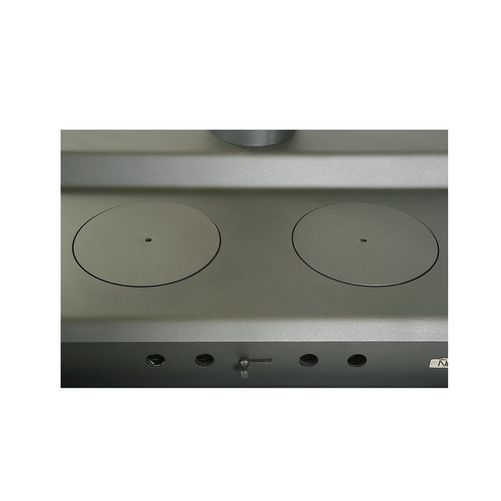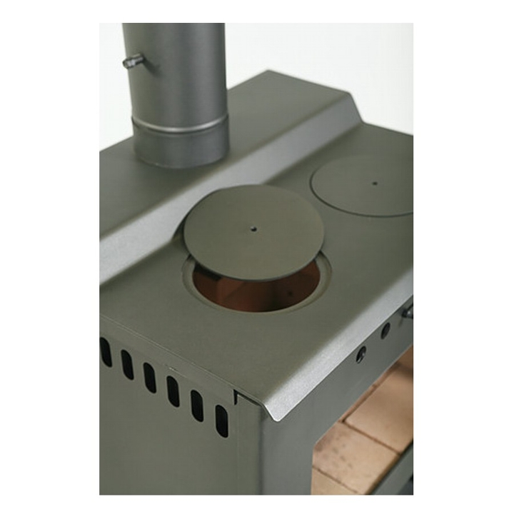 | Materiales | Acero de 5 mm. de espesor en la zona de contacto con el fuego. Acero de 1.6 mm. de espesor en la zona de material refractario. Material refractario de 60 mm. de espesor. Vitrocerámica Schott Robax. Pintura resistente a las altas temperaturas. |