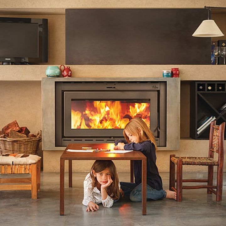 Ñuke Roble 110, su menor altura le permite ajustarse mejor a hogares existentes, con su diseño más apaisado logra una visión más amplia del fuego y los detalles de terminación de la línea Ñuke. Preparado para poner forzadores eléctricos y derivar aire caliente a varios ambientes.