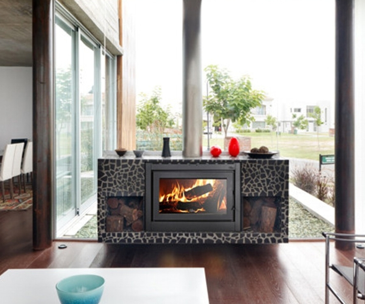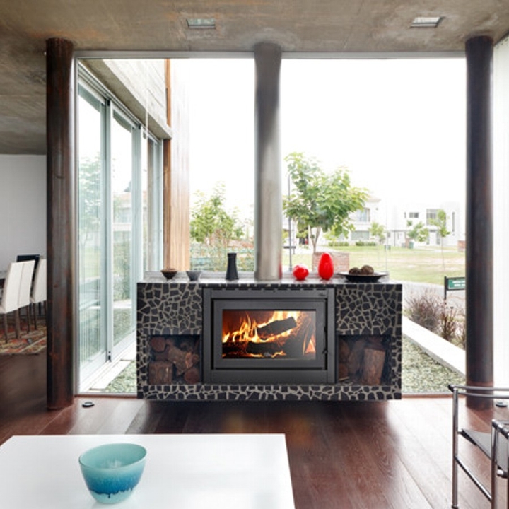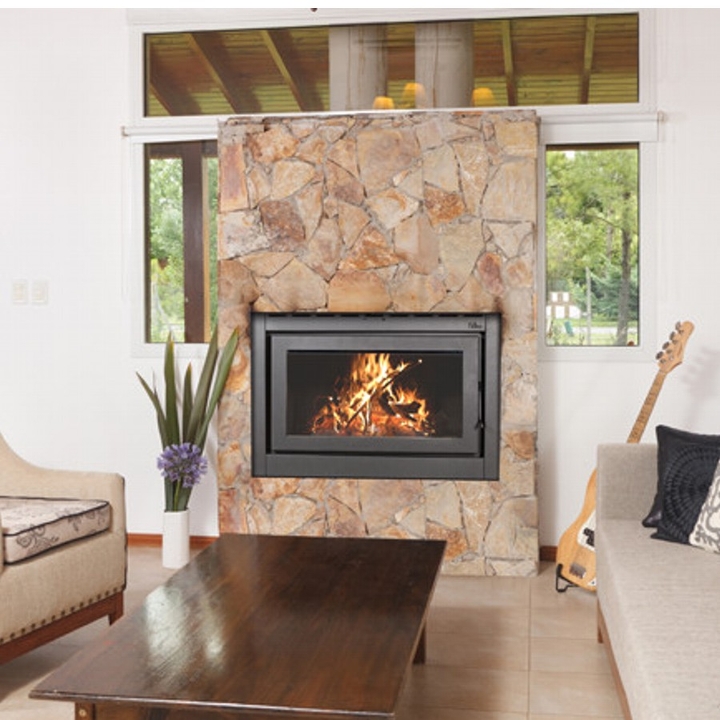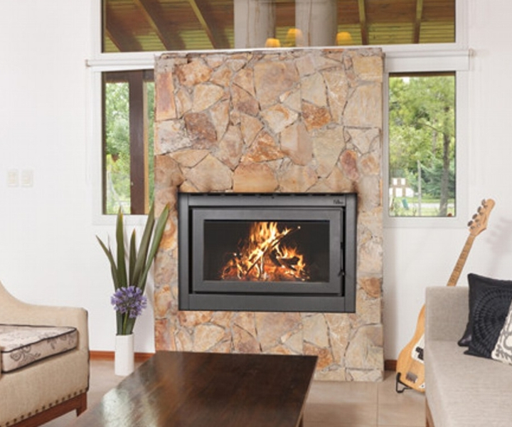 Estos calefactores (de tipo insertables) generan calor por radiación (del frente y del vitrocerámico) y por convección, el aire de la cámara externa se calienta sin contaminación del humo y sale por las toberas de aire caliente de la parte superior de donde se pueden conectar caños de ventilación para llevar a otros ambientes o para el mismo. Si es necesario se pueden conectar forzadores eléctricos para su mejor rendimiento. Estos equipos cuentan con una capacidad de carga superior al resto de la línea.