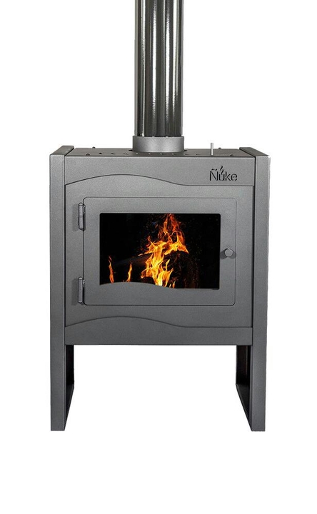 Salamandra de tamaño mediano, permitiendole al usuario adapatarla a la estética de su hogar, recubierta totalmente de tejuelas refractarias. Posee dos cámaras de combustión, donde se queman los gases, no produce olor ni humo.