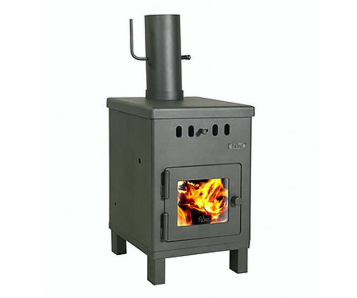Económica y eficaz estufa a leña que proporciona 6.000 K/cal, el ingreso de aire primario es por la parte superior del frente, limpiando el Vitrocerámico. Recubierto en todo el interior con refractarios, posee dos cámaras de combustión, donde se queman todos los gases (no emite humo ni olor), su sistema de doble combustión logra un alto rendimiento de biomasa. Se ha verificado en la Patagonia que calefacciona ambientes de 45 metros cuadrados. Esta superficie varía según la ubicación geográfica y las características de la vivienda.