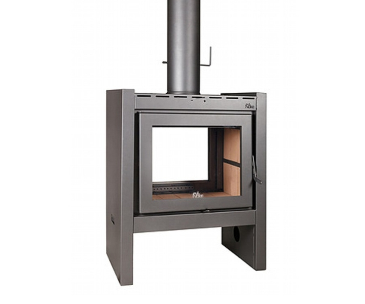 Materiales | Acero de 5 mm de espesor en la zona de contacto con el fuego. Soldaduras MIG. Material refractario de 20 mm. de espesor. Vitrocerámica Schott Robax resistente hasta 750ºC. Pintura para altas temperaturas. |