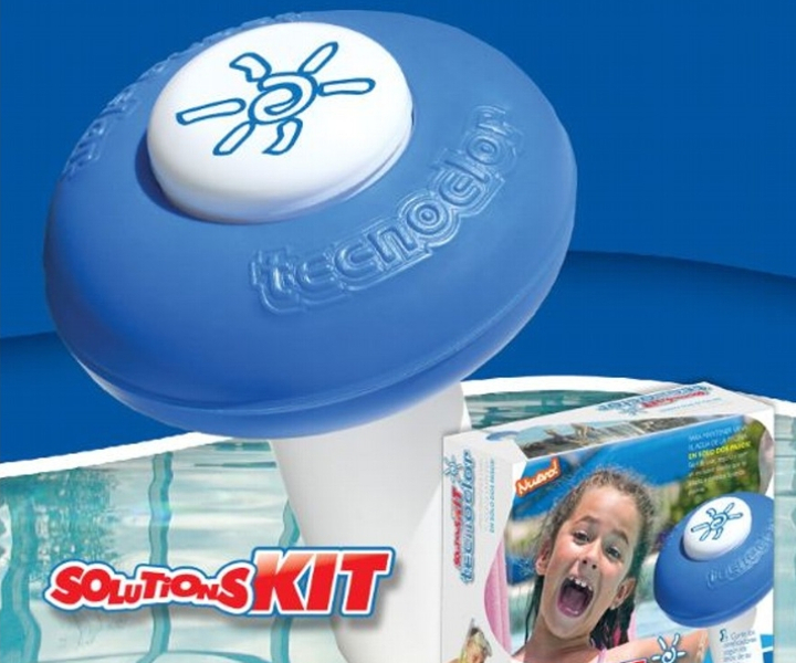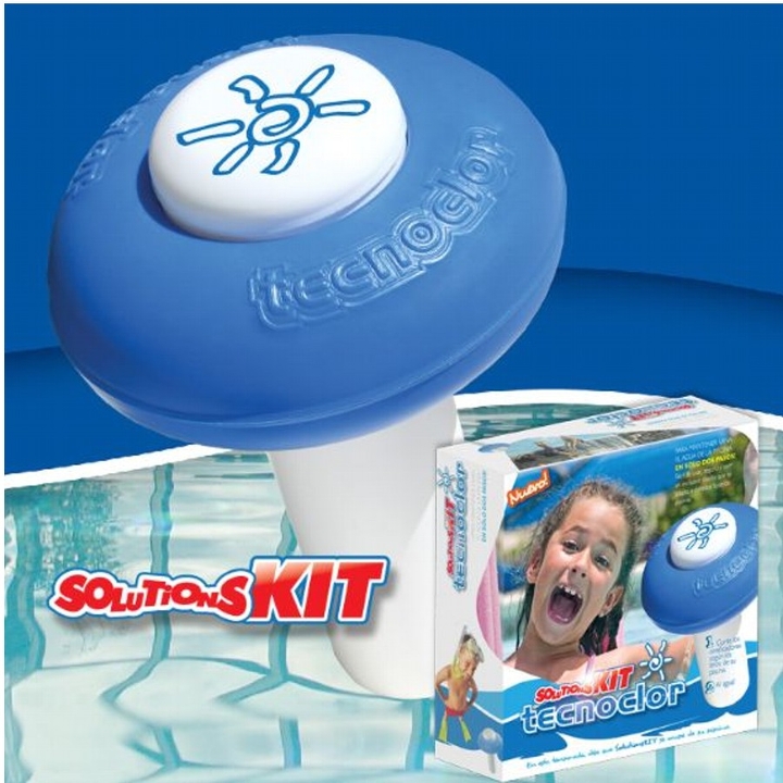 Con el agua de la piscina limpia, corte las perforaciones de un lado y del otro de tecnoclor SolutionsKIT que sean necesarias dependiendo de los litros de agua del natatorio. La duración de las tabletas dependerá de las horas de funcionamiento del filtro, de la temperatura y del flujo del agua. Capacidades preestablecidas: 50000L, 70000L, 90000L